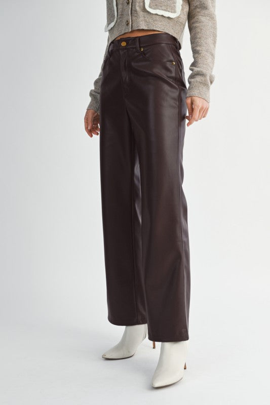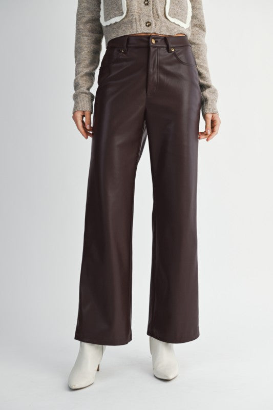 Faux Leather Straight Leg Pants