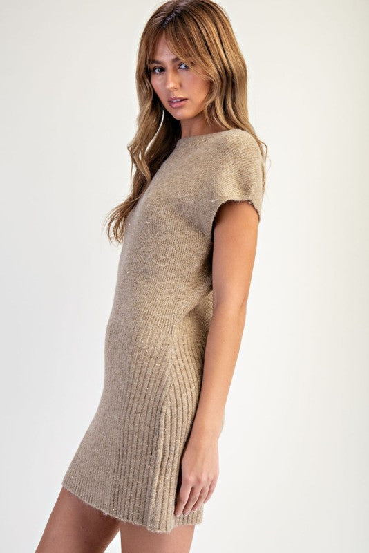 Asymmetrical One Shoulder Sequin Sweater Mini Dress