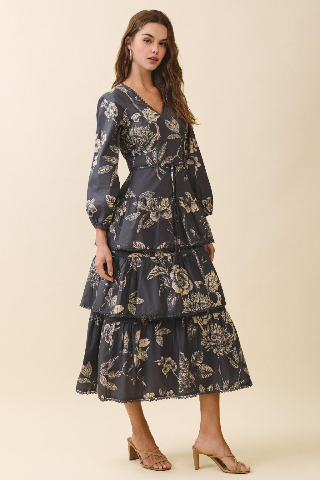 Ivy Printed Backless Maxi Dress - Taupe Floral