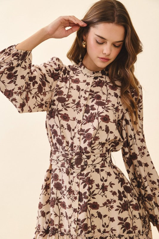 Natalie Belted Floral Print High Neck Shift Mini Dress
