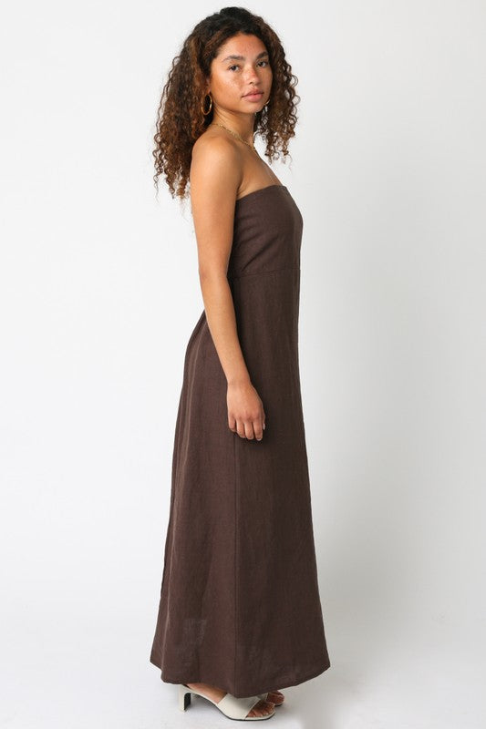 Strapless Linen Maxi Dress.
