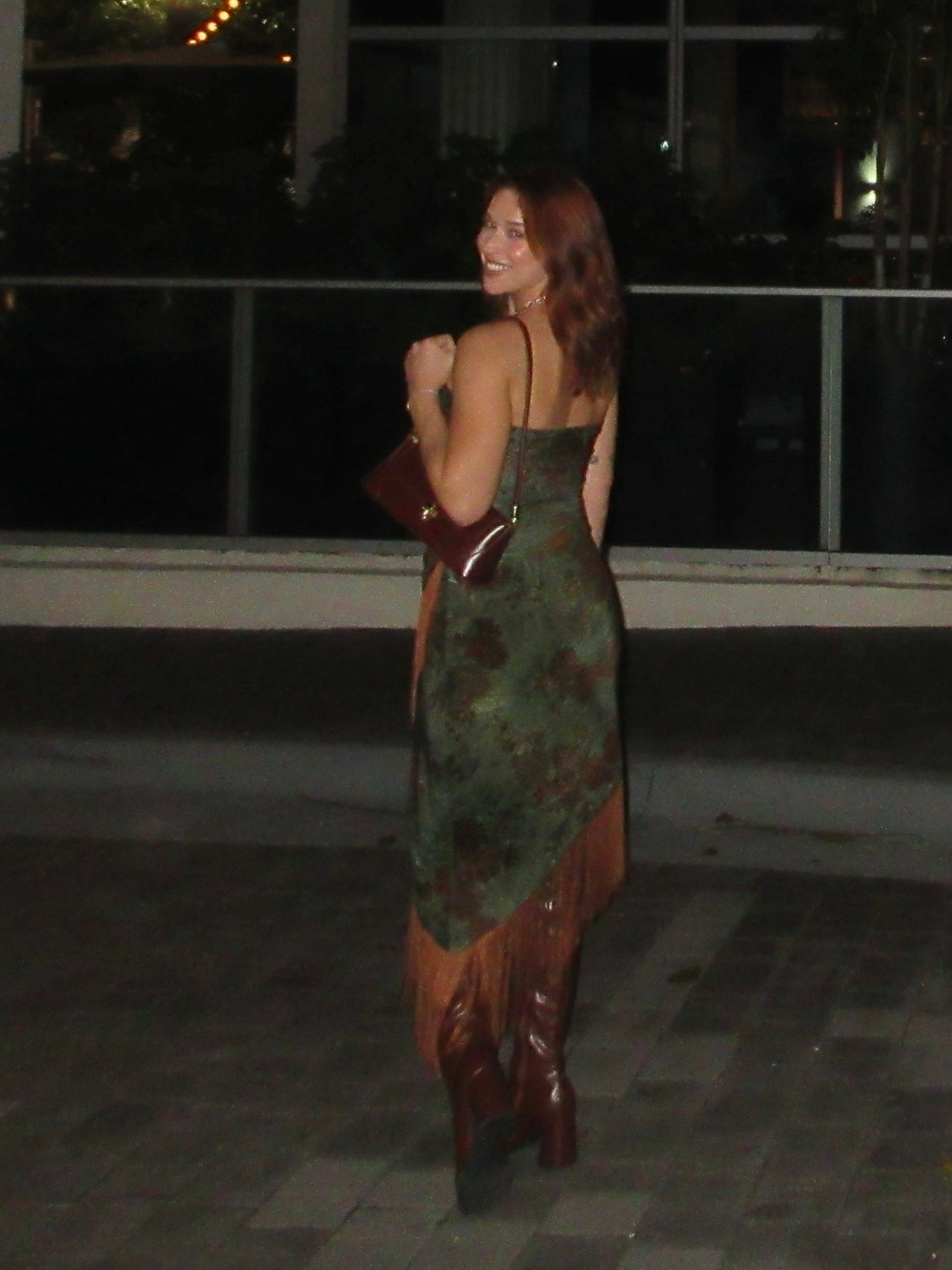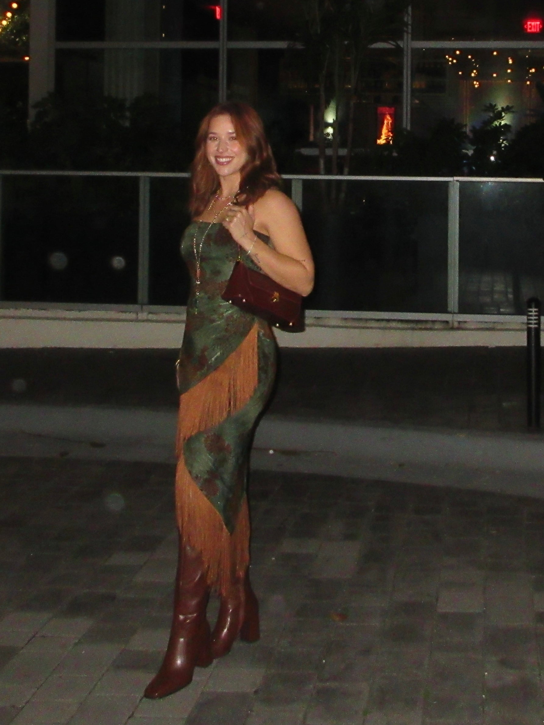 Strapless Asymmetrical Fringe Hem Midi Dress