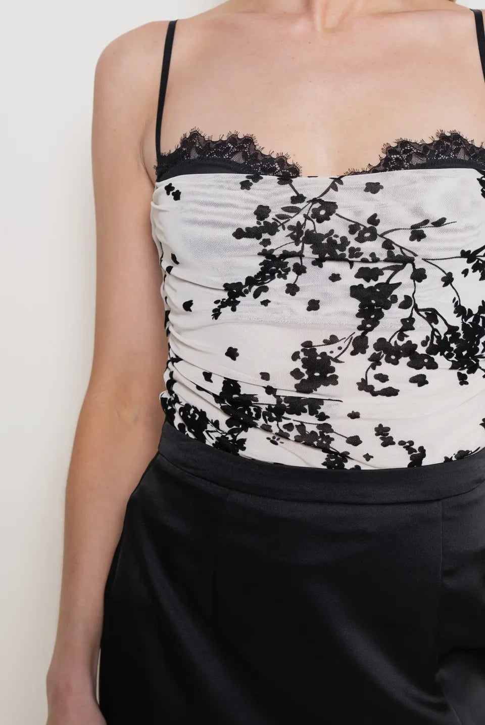 Mesh Floral Burnout Bra Cup Bodysuit Top