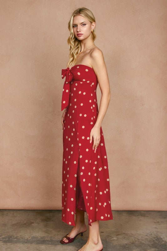 Polka Dot Strapless Tie Front Maxi Dress