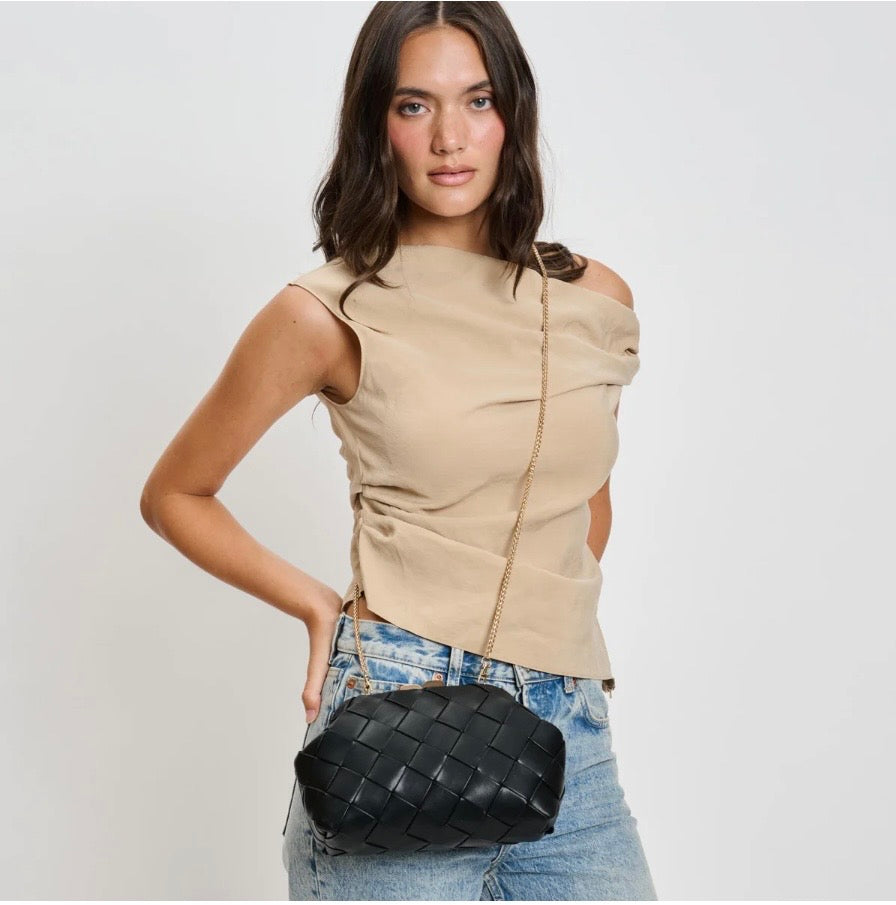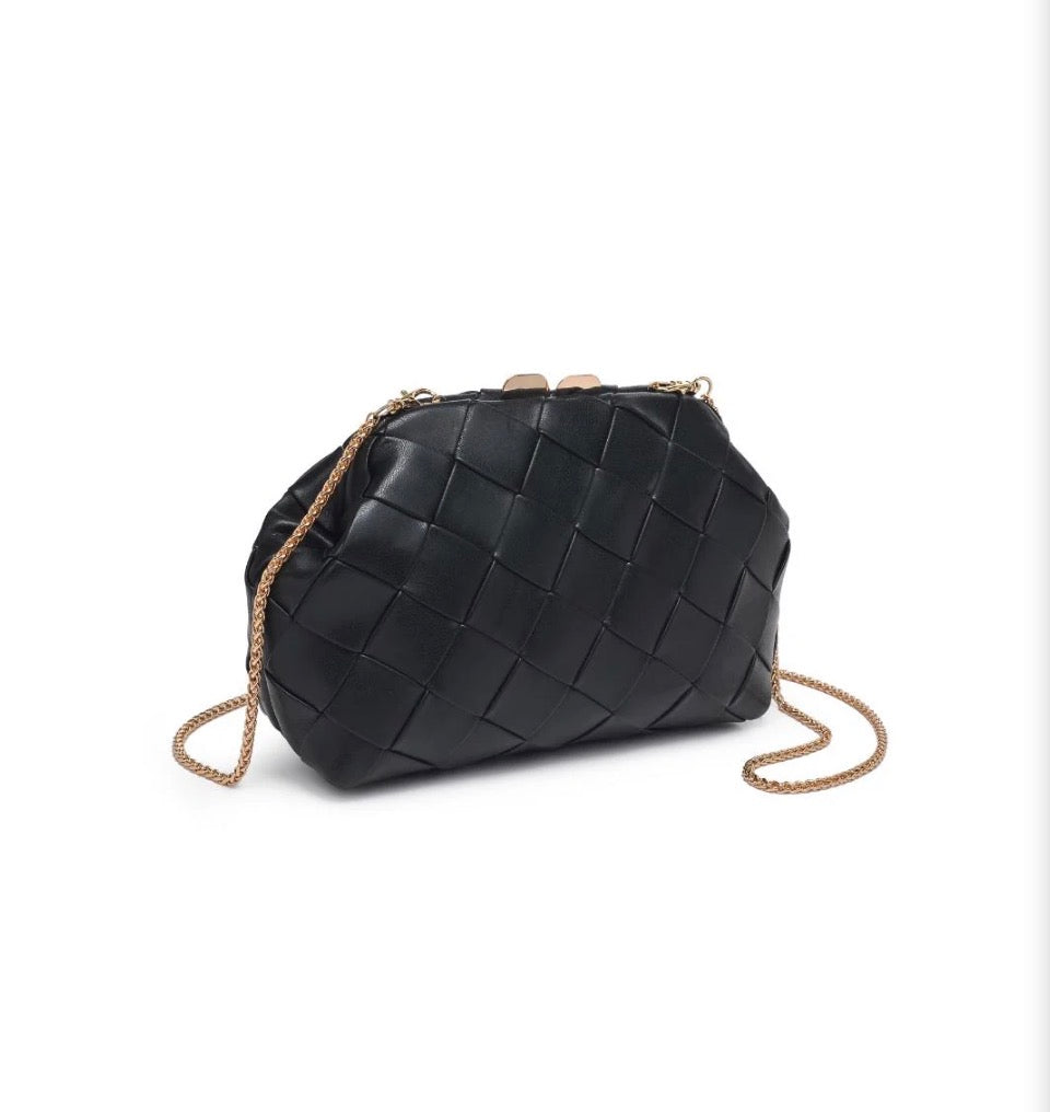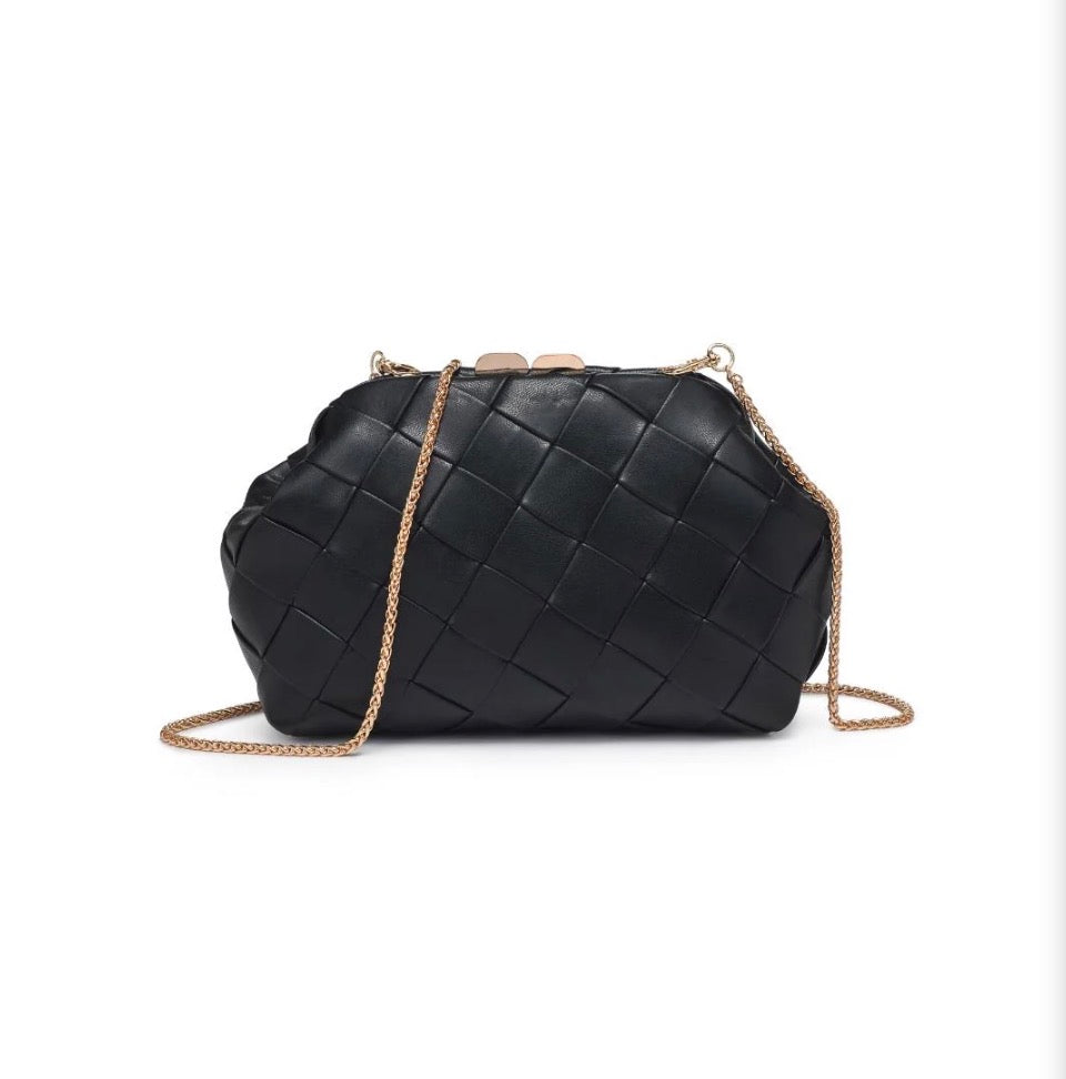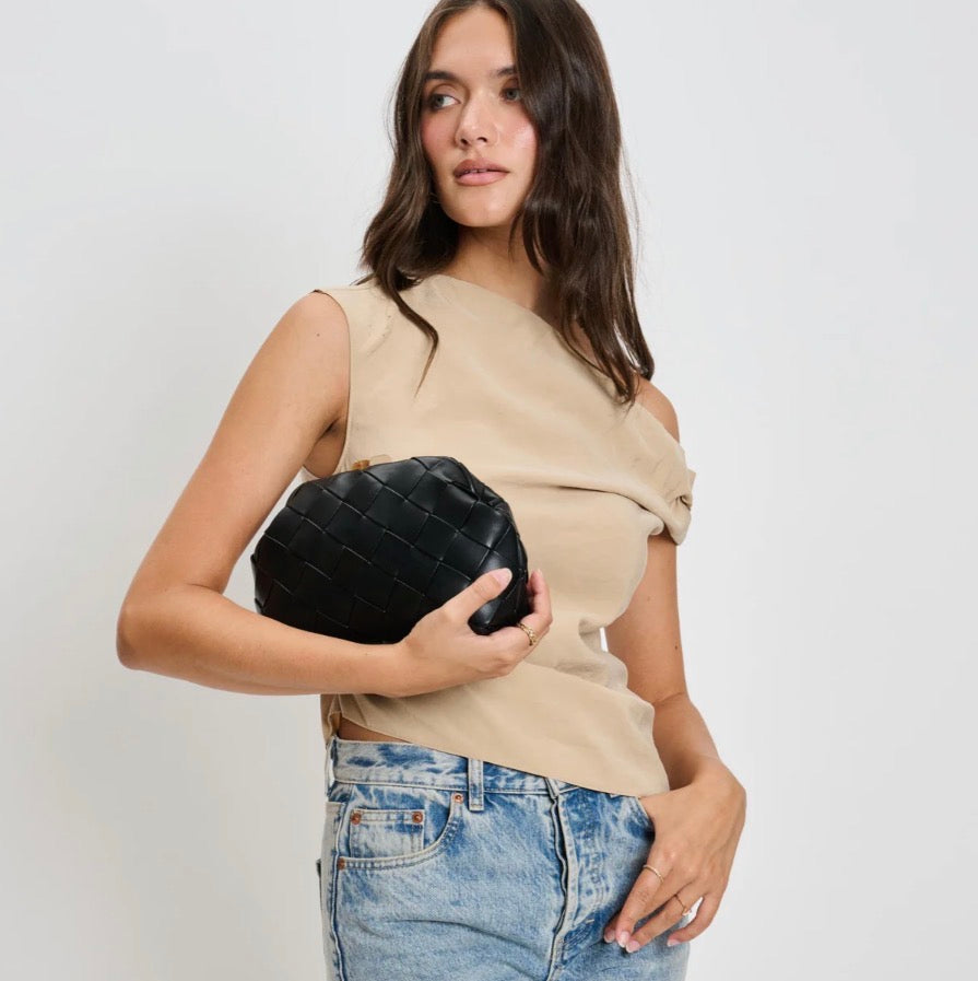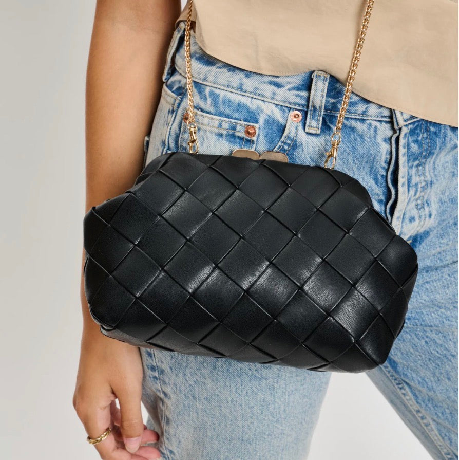 Faux Leather Woven Crossbody Clutch
