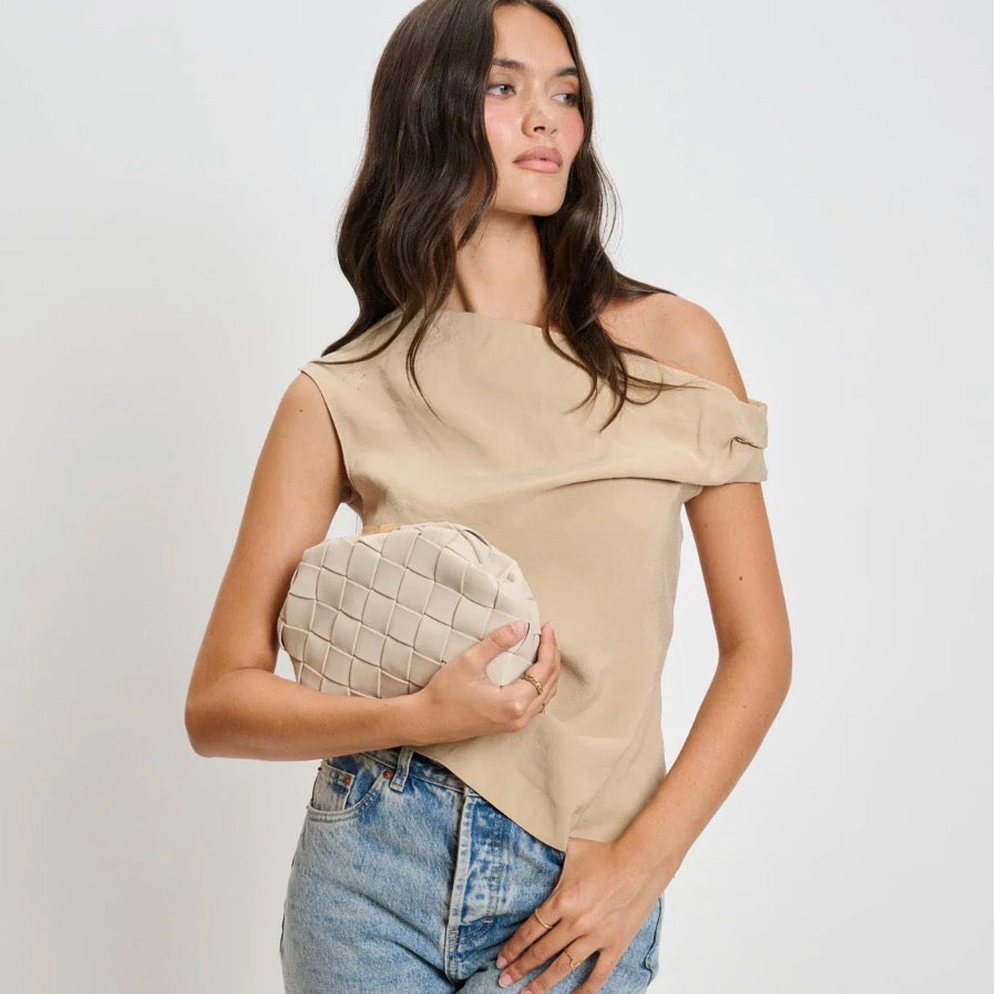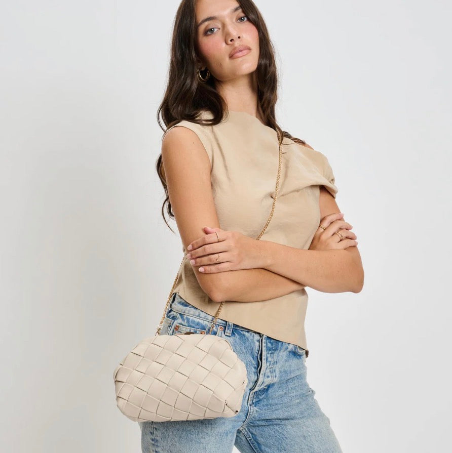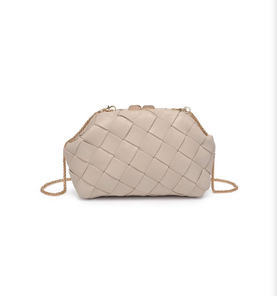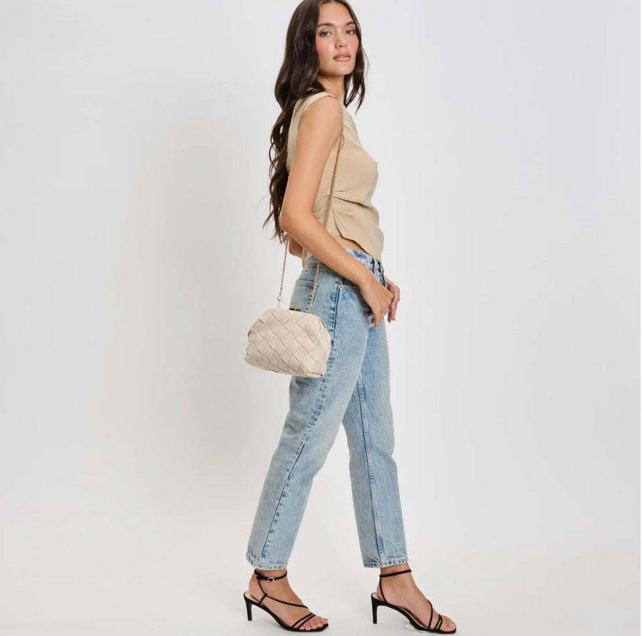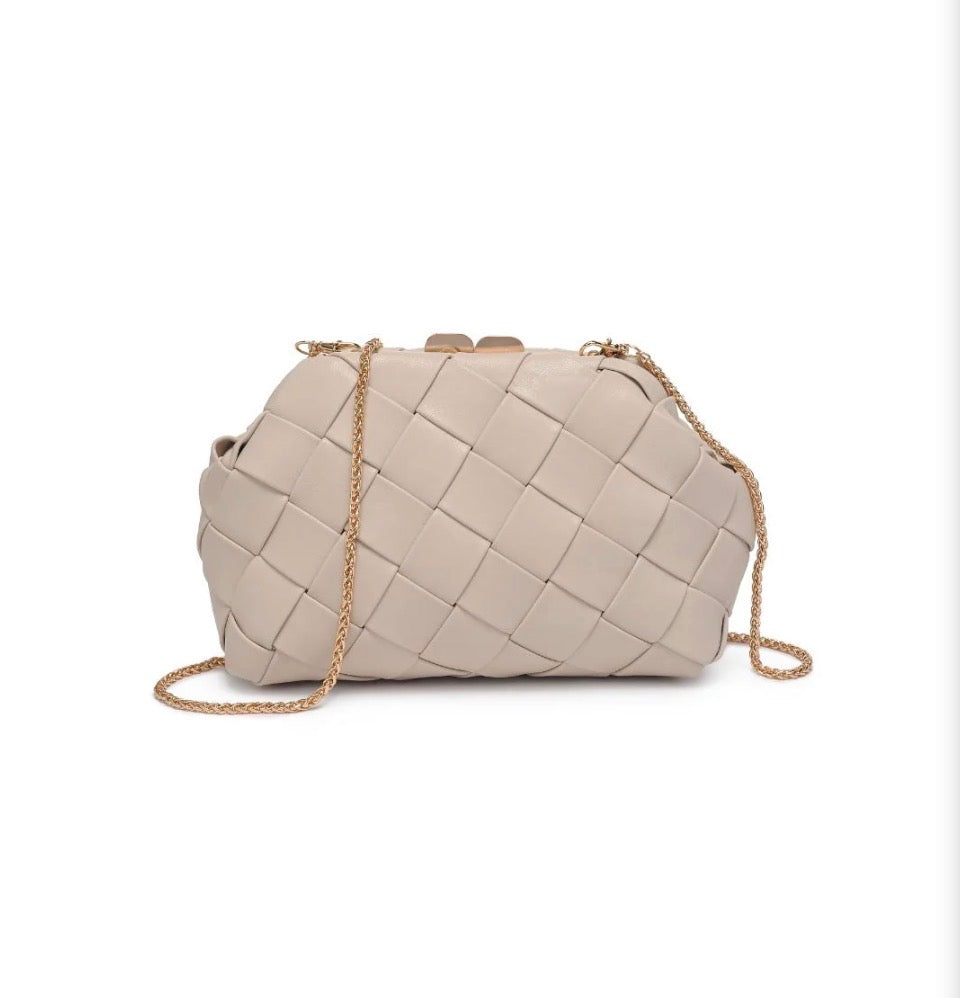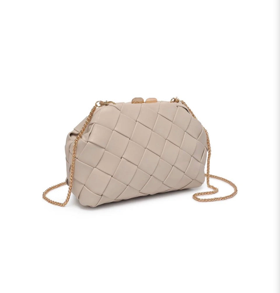 Faux Leather Woven Crossbody Clutch