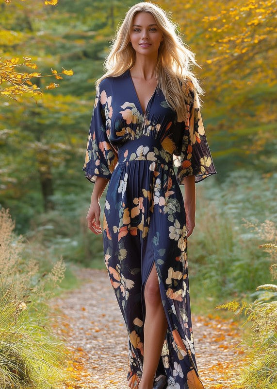 Dolman sleeve tie in the back tiered maxi dress.