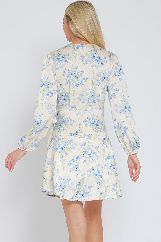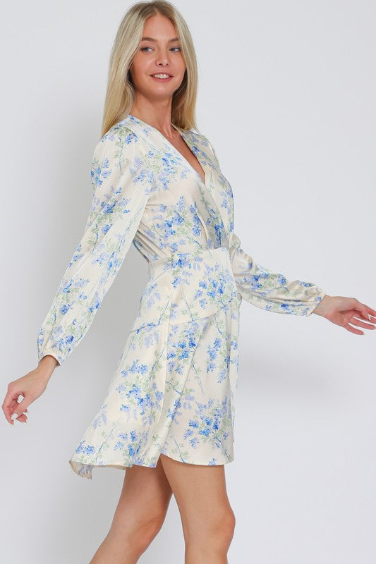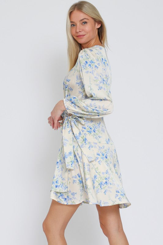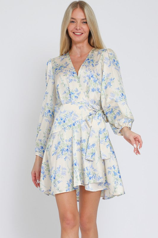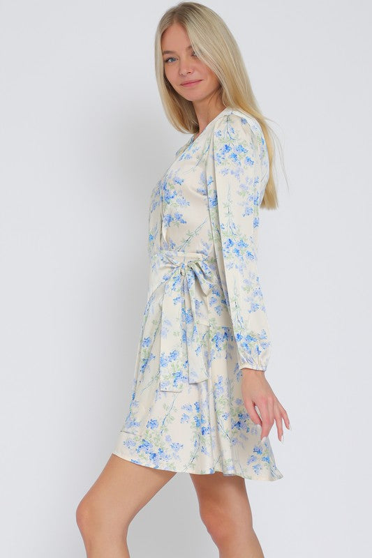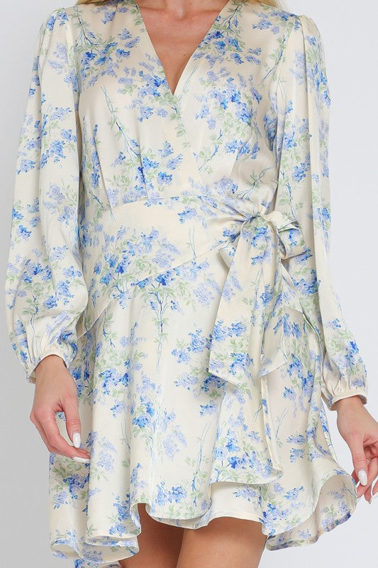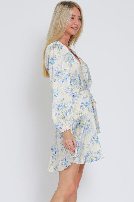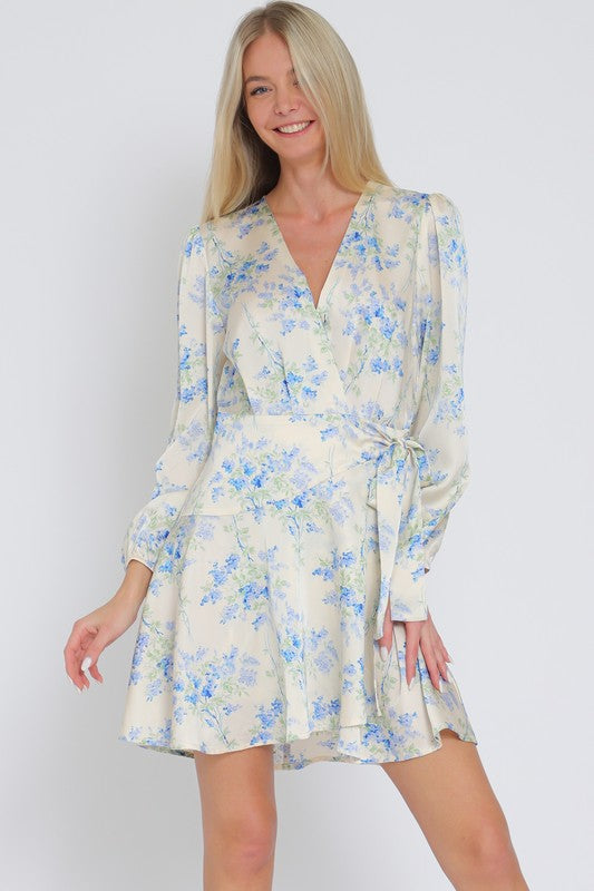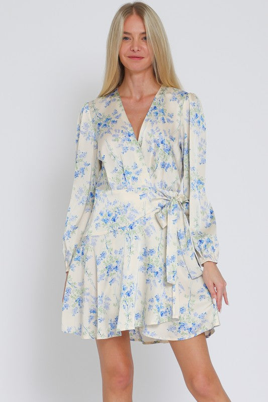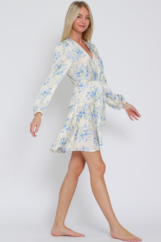 Long Sleeve Floral Wrap Mini Dress