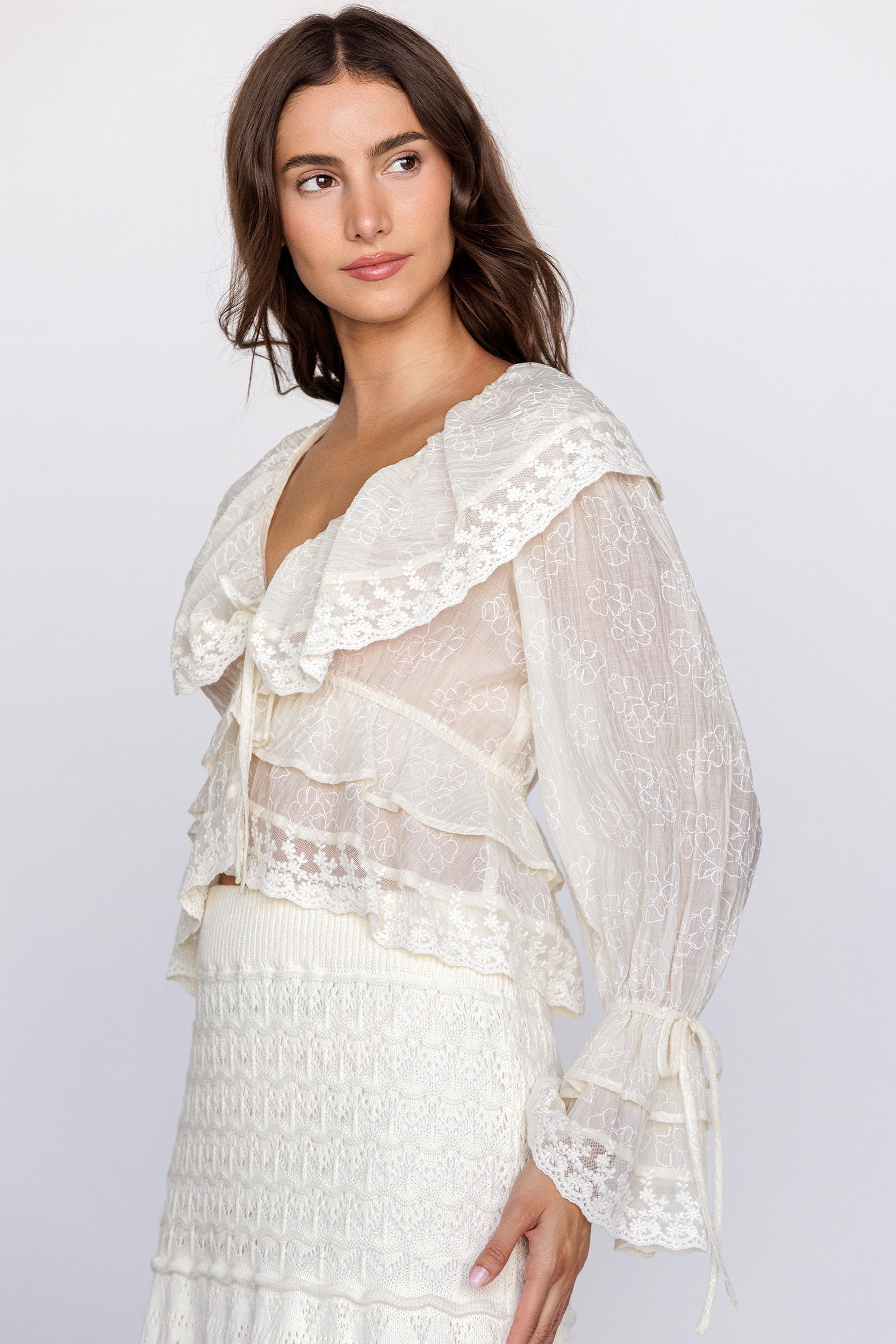 Romantic Lace Ruffle Detail Long Sleeve Top