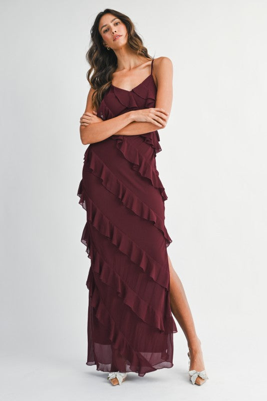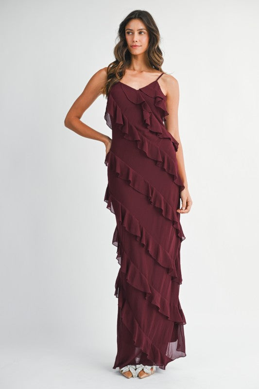 Asymmetrical tiered maxi dress