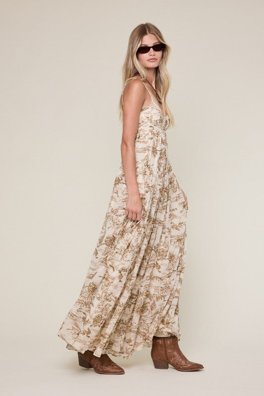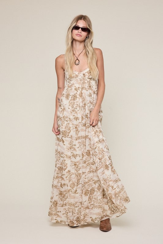 Graphic Cut Out Back Maxi Dress
