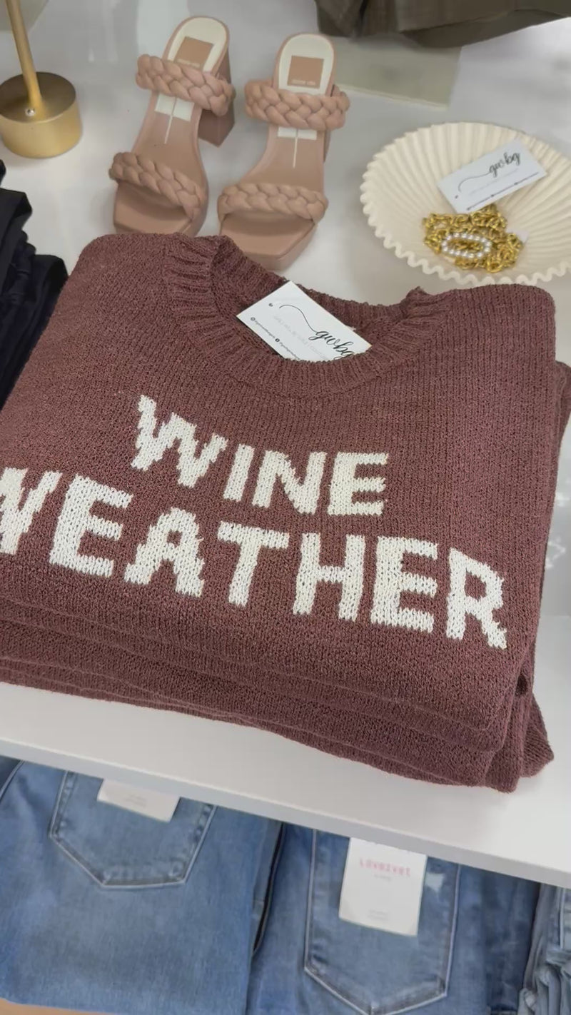 "Wine Weather" Long Sleeve Knit Sweater - BROWN